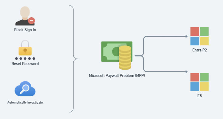 This is what brings us to the Microsoft paywall problem. In order to get better risk detections and automated responses to risk, we need to be on higher levels of licensing. Aka Entra P2 or an E5 plan. In these events, one of the first things you would want to do is either block the user sign in or reset their password. In doing so you can stop or mitigate things going on with the account until you ensure the breach has been mitigated. As MSPs without automated detection and response, we have both a scalability problem (i.e. we can’t potentially monitor all of the alerts being generated across all clients) and we increase risk of damages by not being able to respond fast enough. This is why people turn to purchasing 3rd party tools to layer on like Huntress, Blackpoint, and SaaS alerts which solve for this gap.