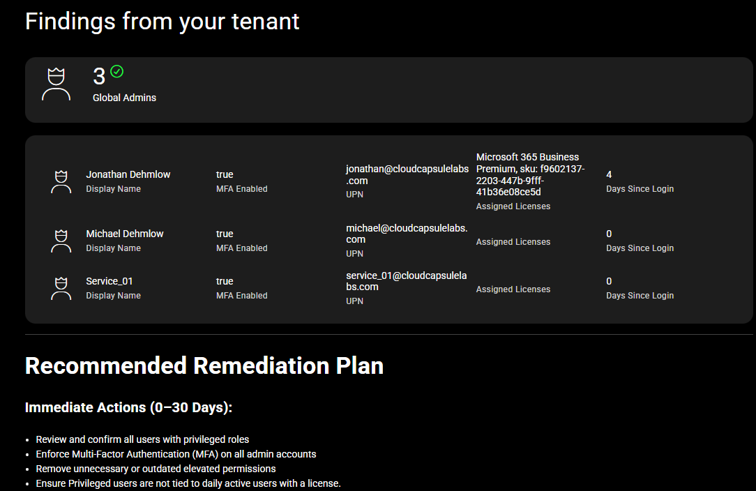 See the exact best practices from this post…automated. CloudCapsule scans your tenants for Global Admin risks (excessive admins, weak/absent MFA, daily-use identities, CA exclusions) and runs a step-by-step Admin Hardening Playbook to close gaps fast. Perfect for MSPs who want consistent, provable outcomes across every client.