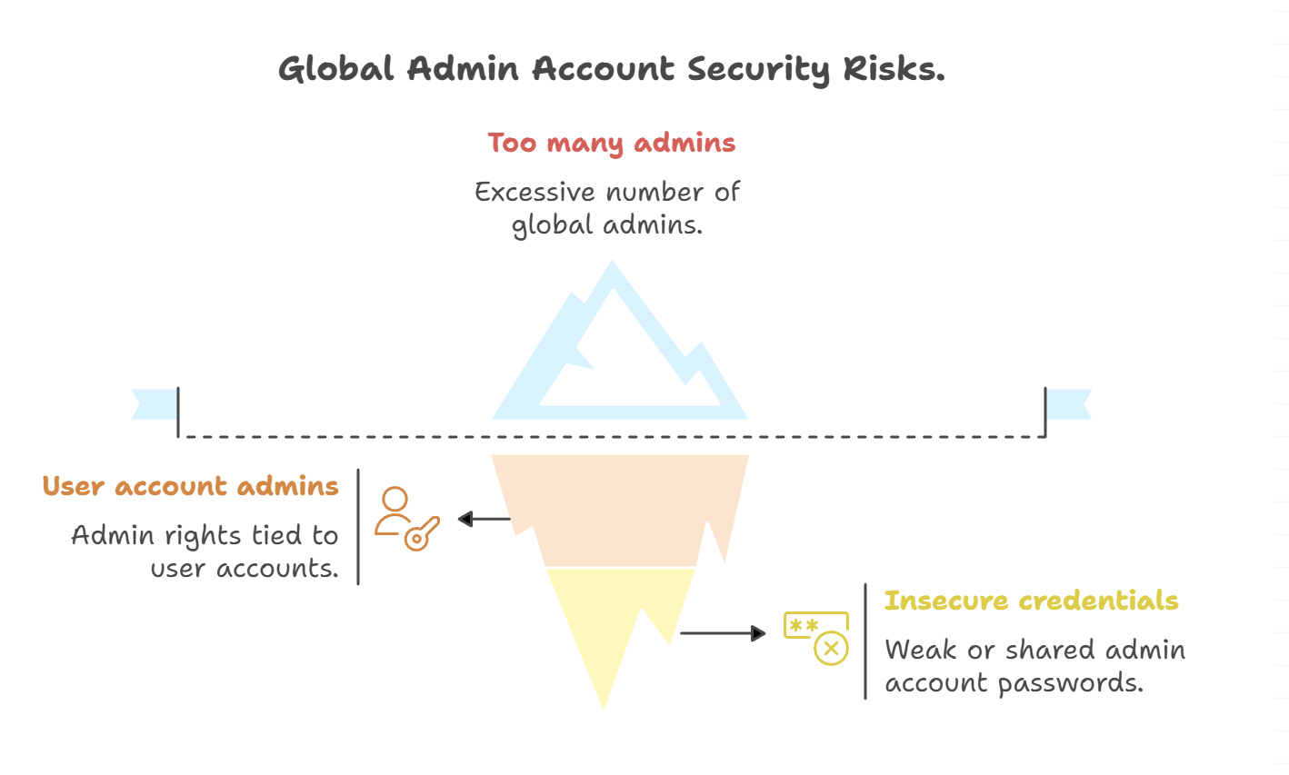 Too many Global Admins (often created during migrations or vendor setups)
