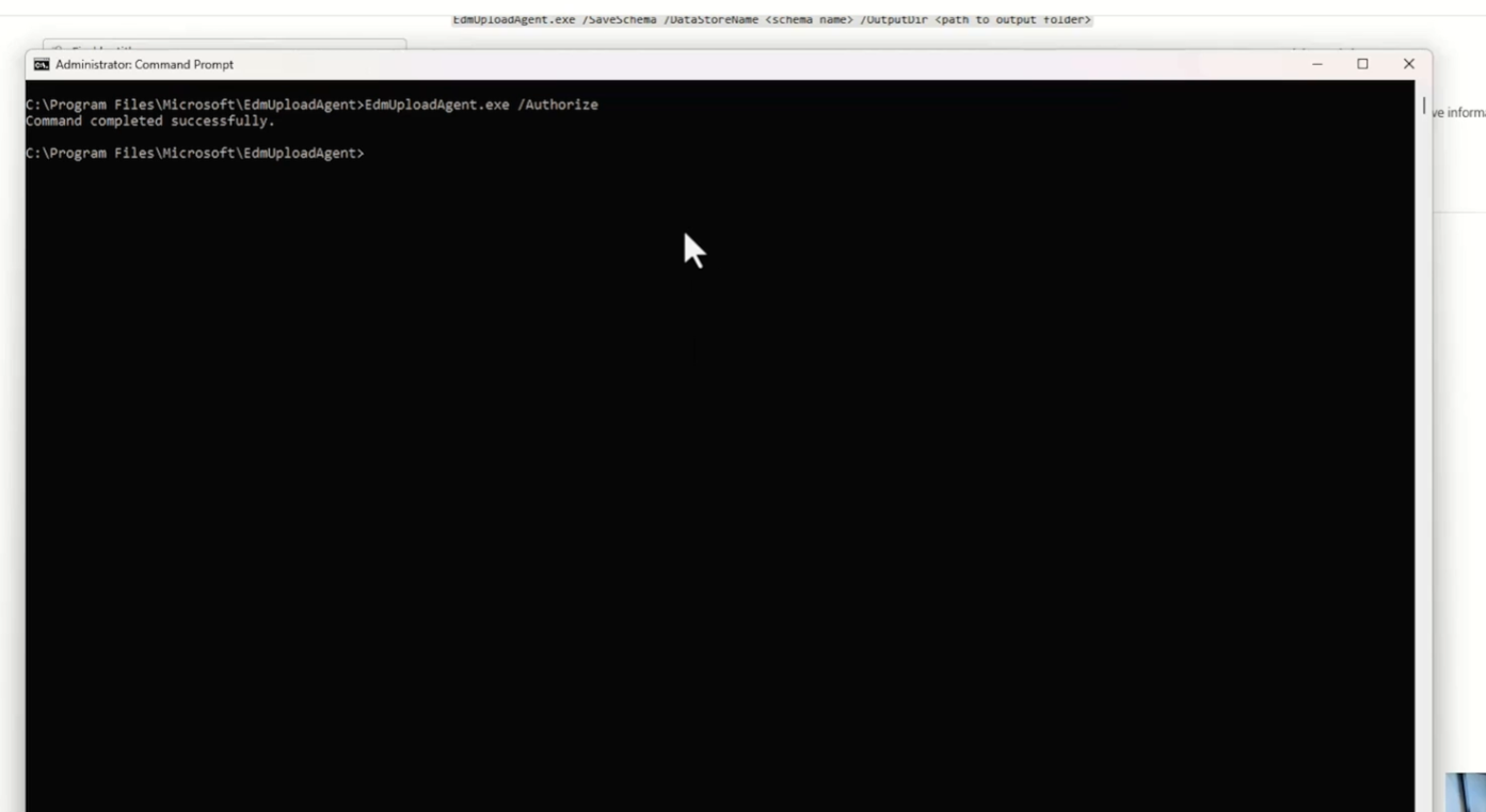 3. Authorize by running EdmUploadAgent.exe /Authorize and signing in.