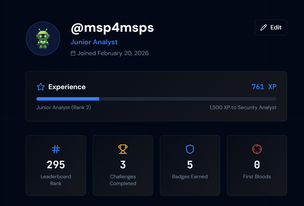 Blue Team Labs is a free cybersecurity training platform built specifically for Microsoft 365. Sign up with your Microsoft 365 account or email, create a profile, and start completing challenges immediately.