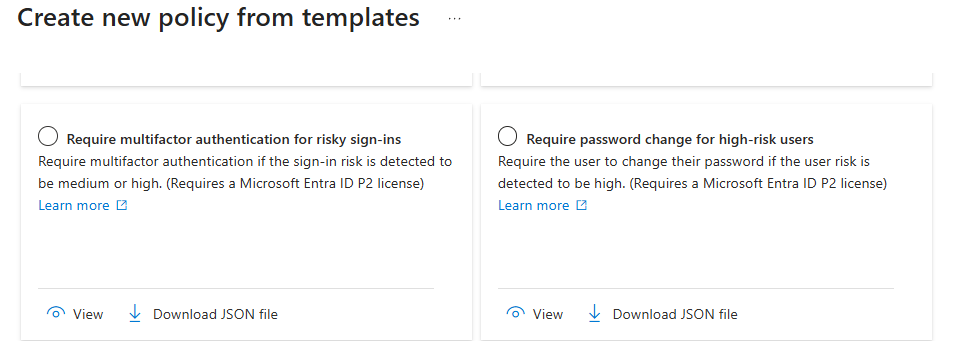 Risk based access policies require advanced identity protection capabilities. These features are included with Entra ID Plan Two, which is bundled with Microsoft E5. They are also available through the Microsoft Defender Suite add on for Business Premium.