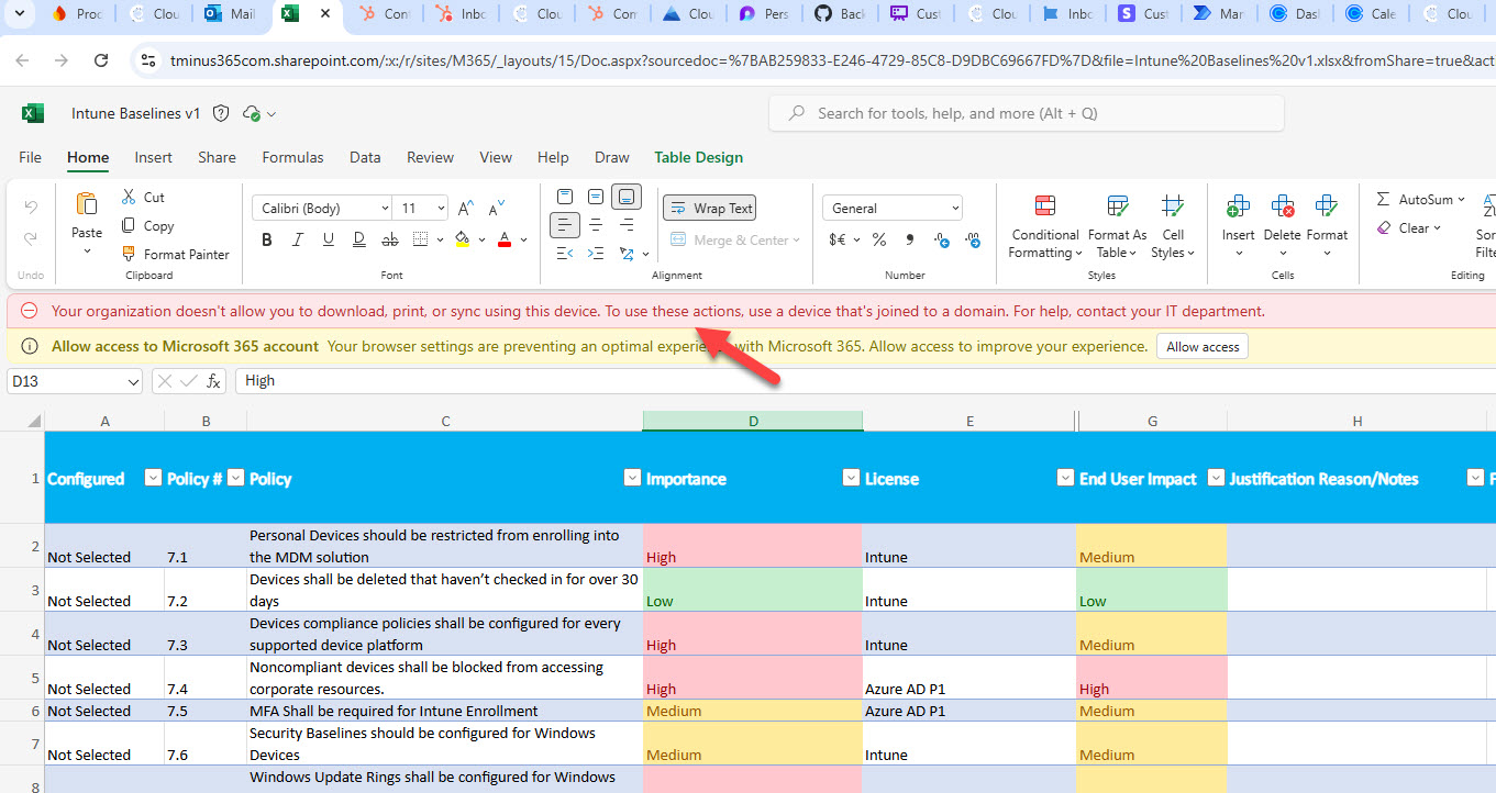 But cannot download files locally unless the device is compliant / managed