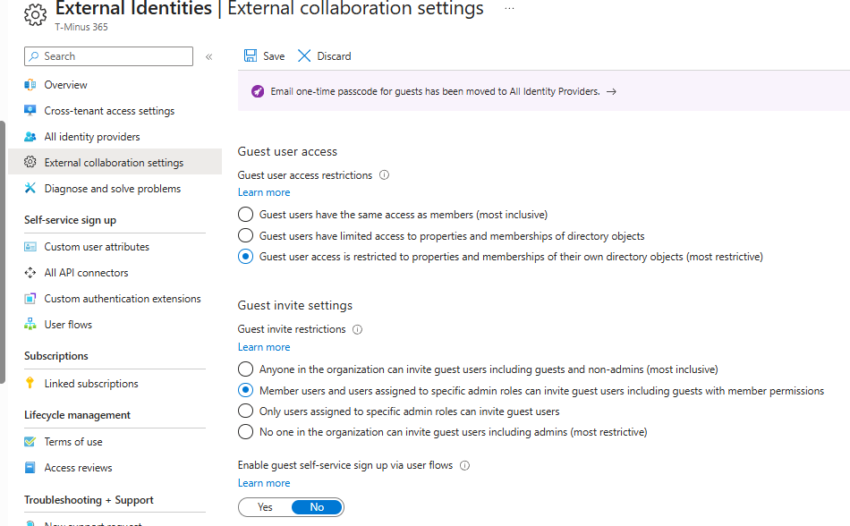 Layer 3: Lock down what guests can do in Entra (directory visibility + invitations)