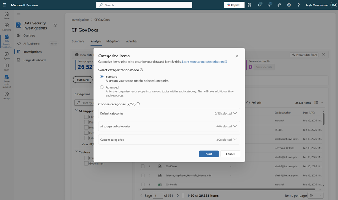 We’re enhancing AI analysis in Data Security Investigations (DSI) to help analysts evaluate risky content more efficiently. These updates streamline the workflow by automatically preparing items for AI analysis as they’re added to an investigation and by introducing a new standard categorization option.