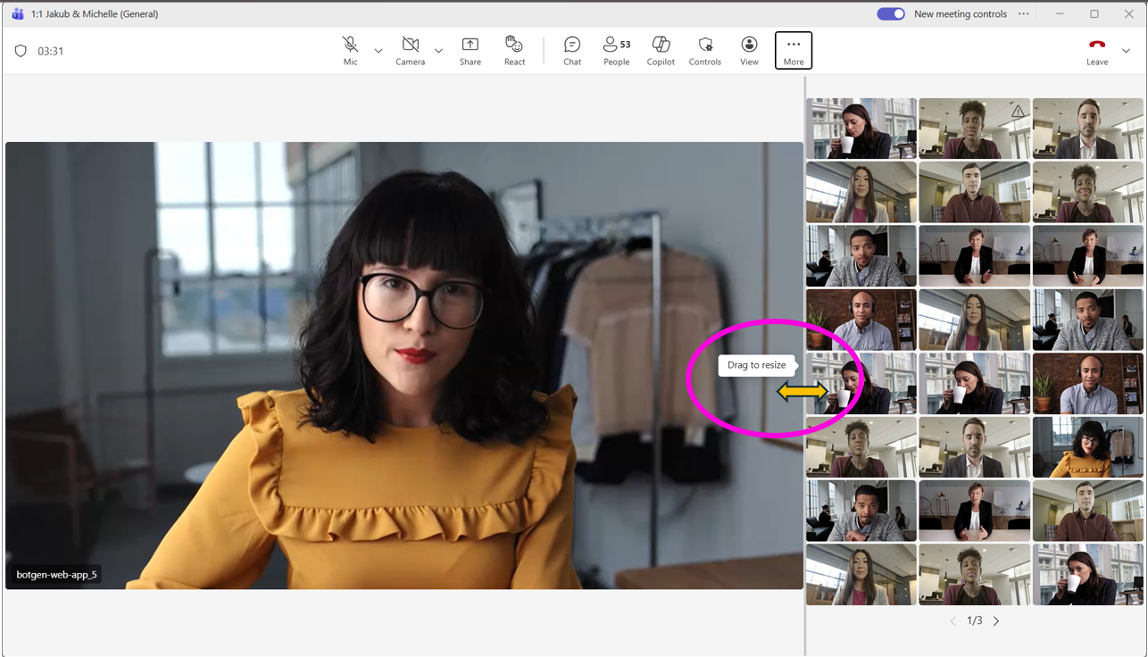 We’re introducing a new flexible layout option in future Teams meetings to give users more control over how shared content and participant videos appear. A resizable divider will let users adjust the space between shared content and the video gallery.