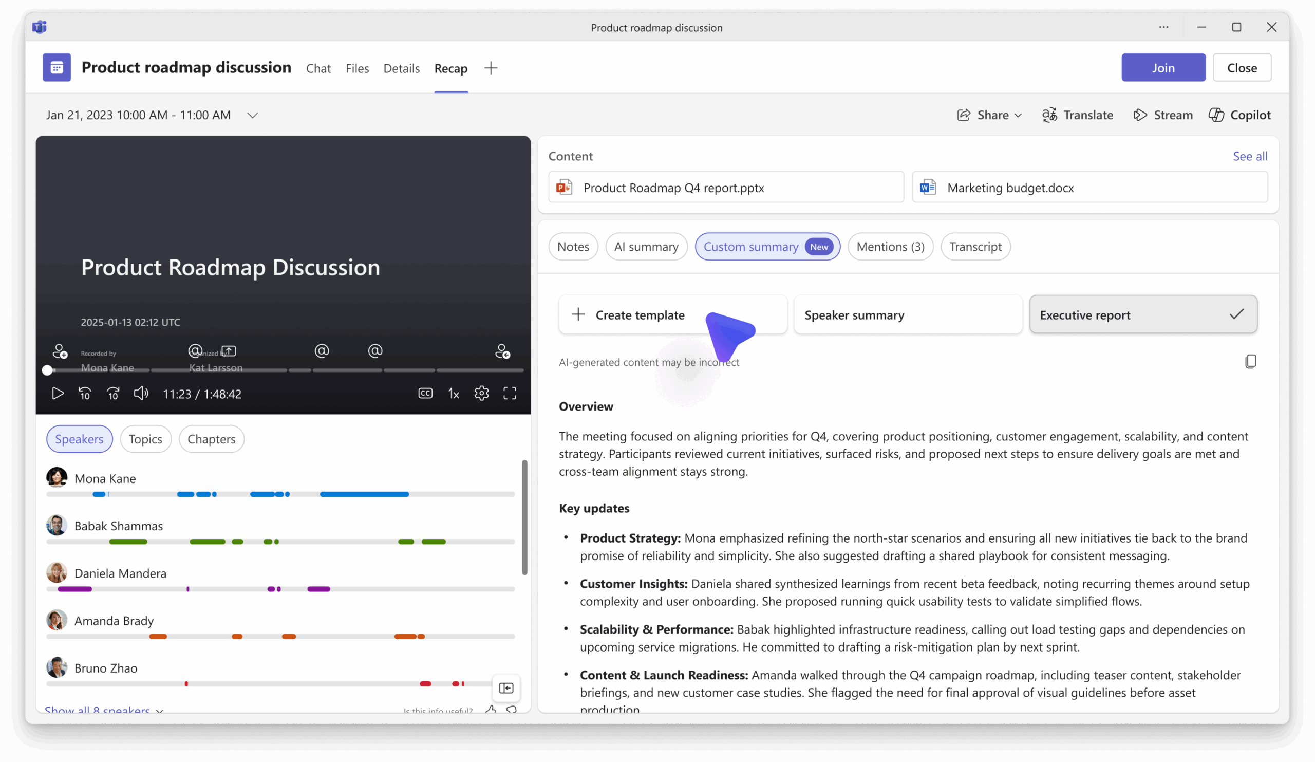 2. Microsoft Teams: Custom AI summary now available in Meeting Recap