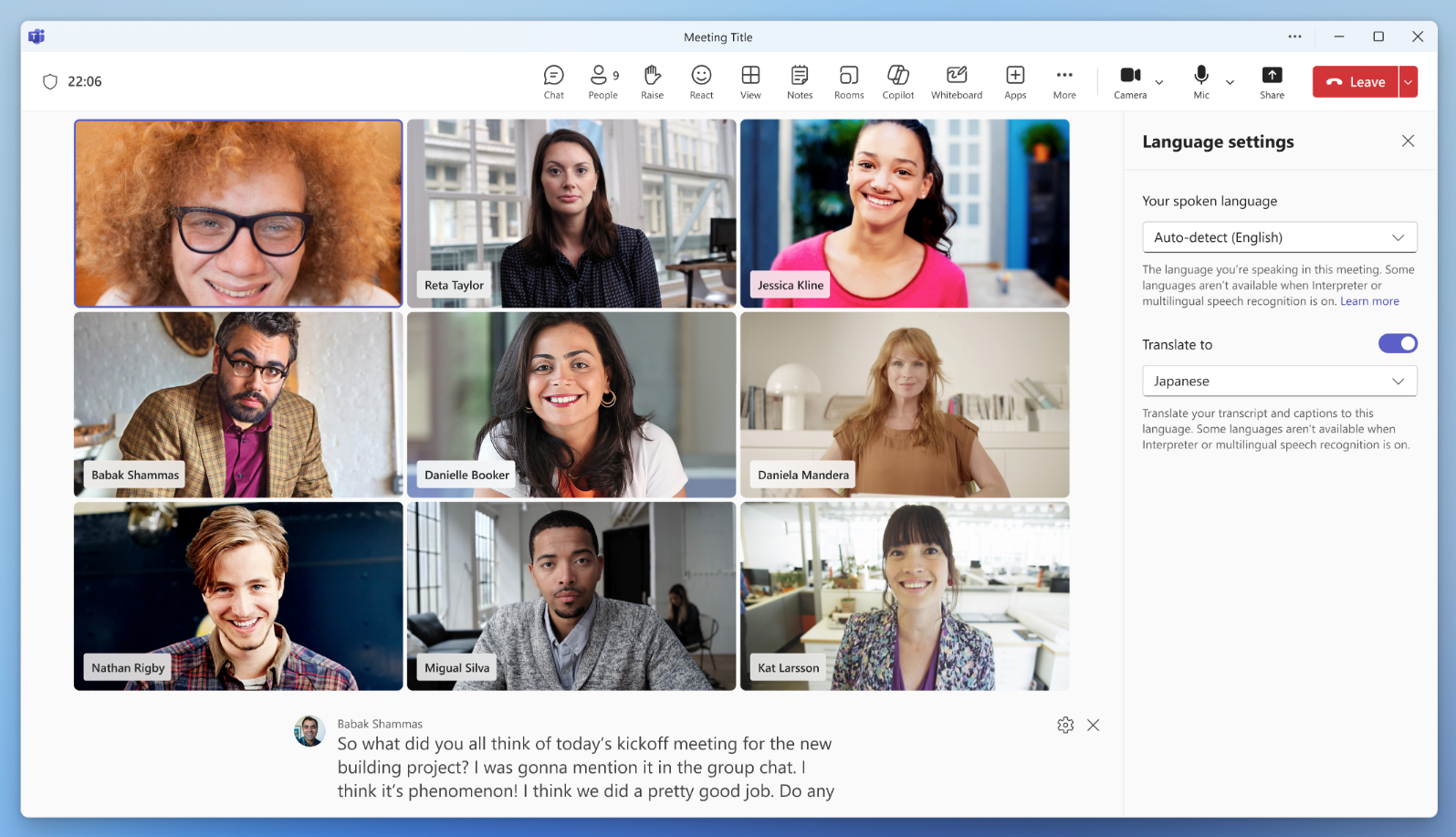 • Automatic spoken language detection – Teams now automatically detects and updates the spoken language across Interpreter, live captions, and transcription—no manual setup required.